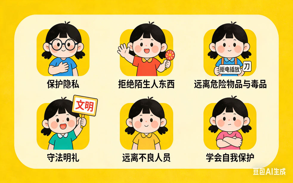 孩子照顾品、犯禁品公共场合,不做他人的工作。不取有不良行为习惯、不良社会风气的人员接触和交往。提高孩子的防备和能力。